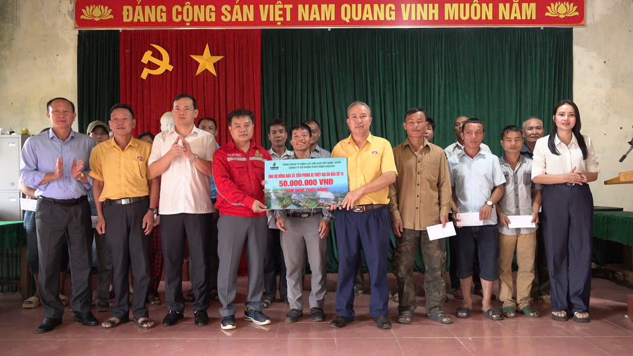 Trước tình hình đó, ngày 07/10/2025, đại diện Công ty cổ phần thủy điện Hủa Na đã trực tiếp đến thăm, trao tặng 100 triệu đồng hỗ trợ đồng bào xã Thông Thụ và 50 triệu đồng cho người dân xã Tiền Phong – những địa phương chịu ảnh hưởng nặng nề nhất sau bão.